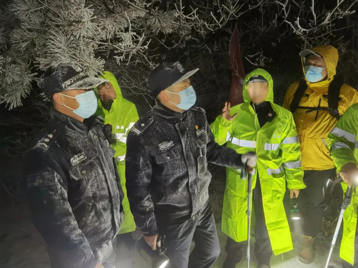 快到半山腰的时候,临安民警迎面遇到了宁国万家派出所民警,因为雪大,他们也走错了岔路,将两人安全护送至山脚。