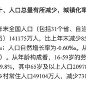 自然增长率-0.60%,一年减少85万人,中国人口拐点已经来了