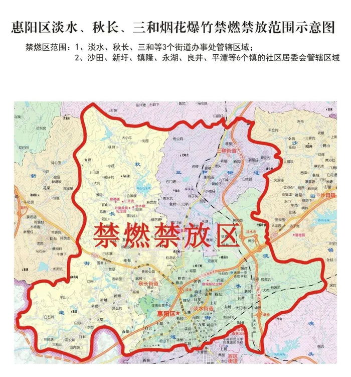 仲恺高新区行政区域范围内及潼湖军垦农场全面禁止燃放烟花爆竹。
