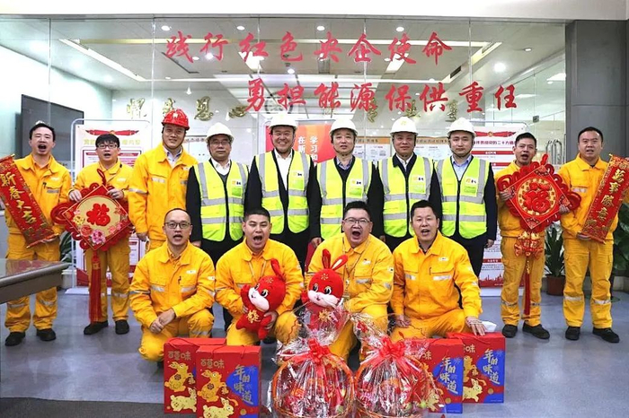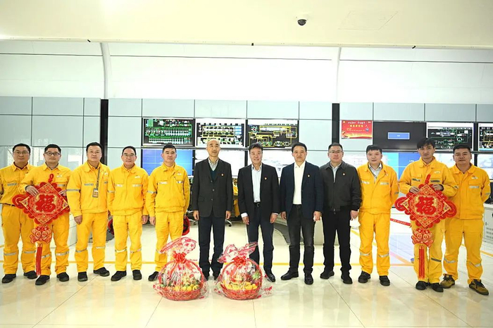1月16日潘福董事一行前往南沙电厂生产现场进行调研和安全检查,查看了集控室、汽机平台检修现场等主要生产区域,并向一线员工送上新年慰问和新春祝福。在座谈会上,潘福董事听取了相关工作情况汇报,并表示,面对复杂挑战,要坚定信心,踔厉奋发,坚决扛起央企责任担当,推动业务可持续、高质量发展