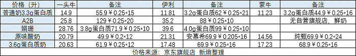 认养一头牛高速发展的核心动力,本质上是高价产品的“套利”。其产品主要分为超高温灭菌乳(常温奶)和风味酸牛奶(常温酸奶),全面对标其他乳业品牌的高端产品。