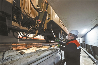 近日,北京青年报记者在北京丰台站采访时发现,这里有着一群“不一样的上水工”,普速车场上,传统的上水作业模式被颠覆,抬臂仰头插管上水的全新模式,让很多同行惊叹。其实,这种改变得益于丰台站对普速车场的特殊设计。普速车场的站台为中空站台,各专业作业通道被整合成了综合管廊,隐藏在站台下,再配合横贯东西、南北通连的专用人员走行通道,在为旅客列车上水、卸污、维修车辆时,工作人员只需在廊道内行走就能完成。