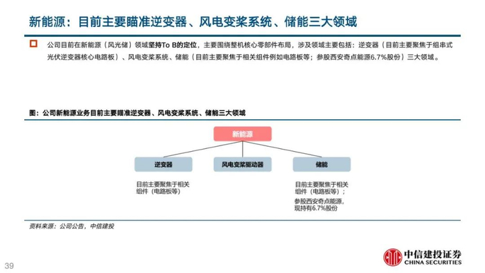 公司此前在成熟市场避开与传统巨头正面交锋,而侧重于挖掘细分市场,主要系电力电子领域鲜有规模较大的新兴产业出现。公司积极布局新能源领域,产品矩阵持续丰富,远期有望打开数百亿元级的营收增长空间。