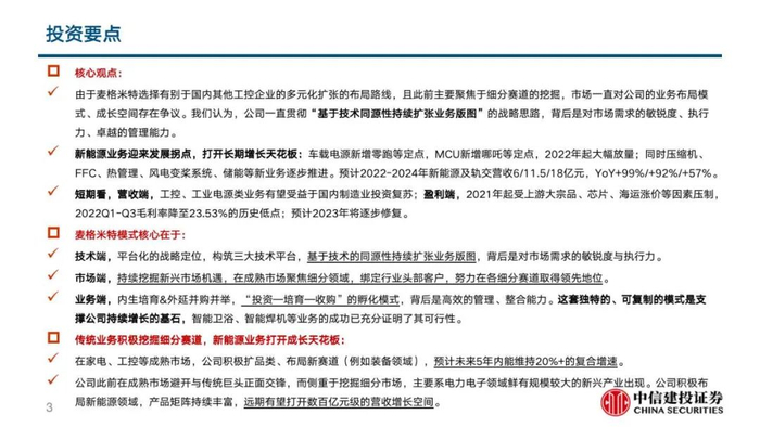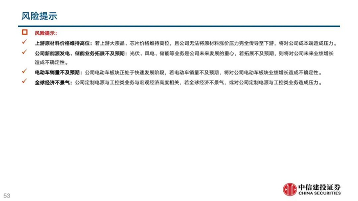 短期看,营收端,工控、工业电源类业务有望受益于国内制造业投资复苏;盈利端,2021年起受上游大宗品、芯片、海运涨价等因素压制,2022Q1-Q3毛利率降至23.53%的历史低点;预计2023年将逐步修复。