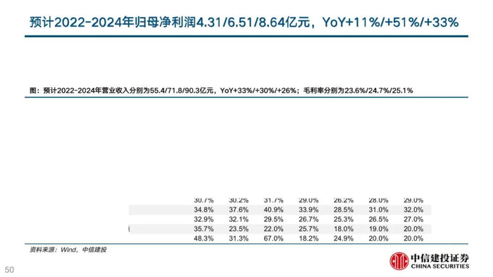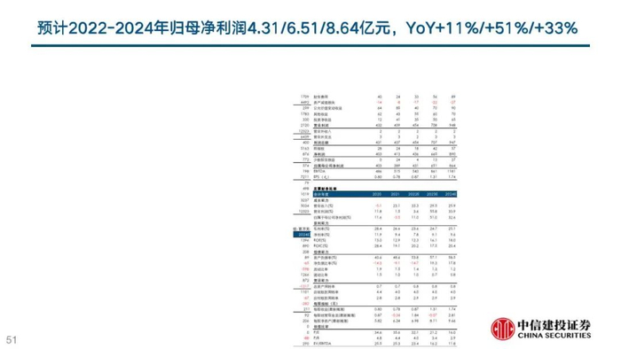 新能源业务迎来发展拐点,打开长期增长天花板:车载电源新增零跑等定点,MCU新增哪吒等定点,2022年起大幅放量;同时压缩机、FFC、热管理、风电变桨系统、储能等新业务逐步推进。预计2022-2024年新能源及轨交营收6/11.5/18亿元,YoY+99%/+92%/+57%。