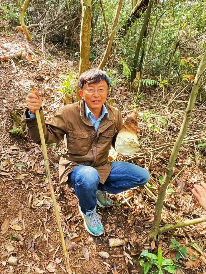 张进在杭州“渡过”基地挖笋。受访者供图