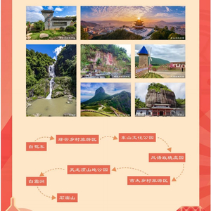 自驾车—绿云乡村旅游区—东山文化公园—凤语玫瑰庄园—吉太乡村旅游区—天龙顶山地公园—白霜涧—石庙山