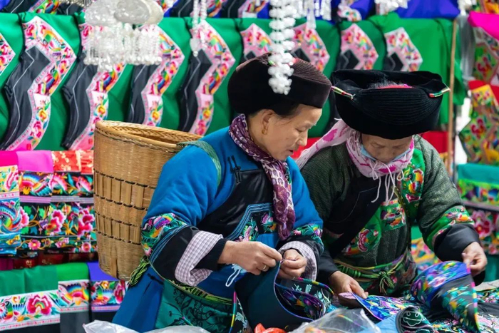 ▲1月15日,苗族群众在选购民族饰品。当天是南方农历小年,吉首市乾州农贸市场的年货大集热闹非凡,众多群众到此赶大集、办年货。刘振军 摄