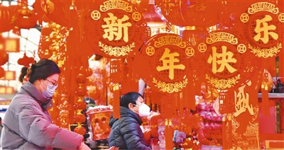 1月14日,贵州省铜仁市玉屏侗族自治县年货市场上,市民带着孩子挑选春节装饰品。胡攀学摄(人民视觉)