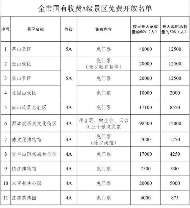 在“迎新春嗨购游”文旅消费季原有优惠政策不变的基础上,2023年1月21日(除夕)至2023年1月27日(初六)期间,全市11家国有收费A级旅游景区(名单附后)对所有镇江市民、游客实行免费(门票)开放(醋文化博物馆除夕闭馆、金山景区除夕敬香暂停)。