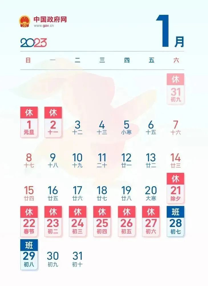 2023年春节放假时间