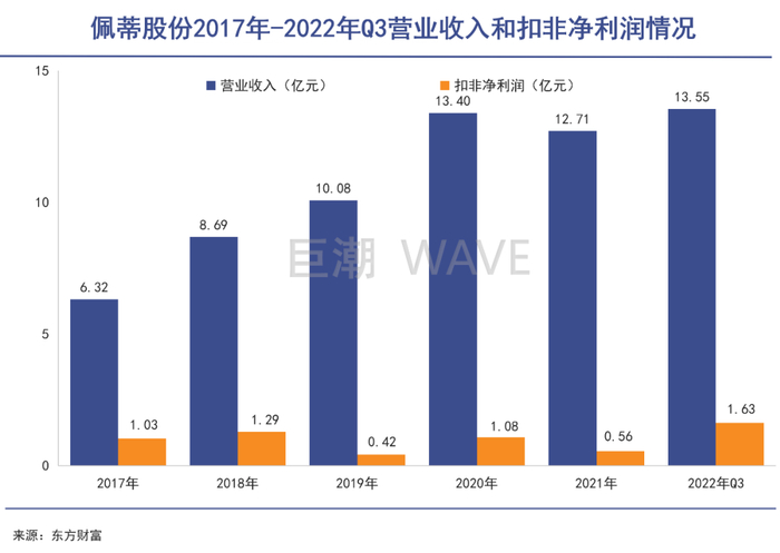 A股中的“宠物经济*股”——佩蒂股份是我国较早专业从事宠物食品产业的企业之一。2022年前三季度,其营收增长近50%,利润增幅超100%。但业绩对股价并无帮助,2022年下跌14.3%。