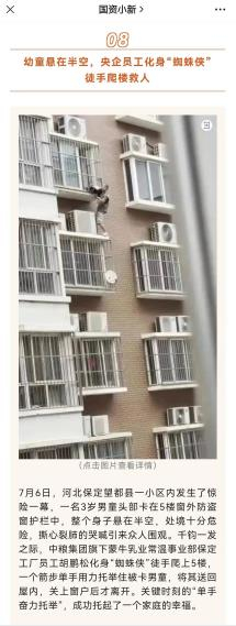 2022年7月6日上午,正在家中休息的胡鹏松,因在千钧一发之际,徒手从一楼外墙爬至五楼成功救助挂在防盗窗上的小男孩,而被众多媒体和网友称之为“蜘蛛侠”。