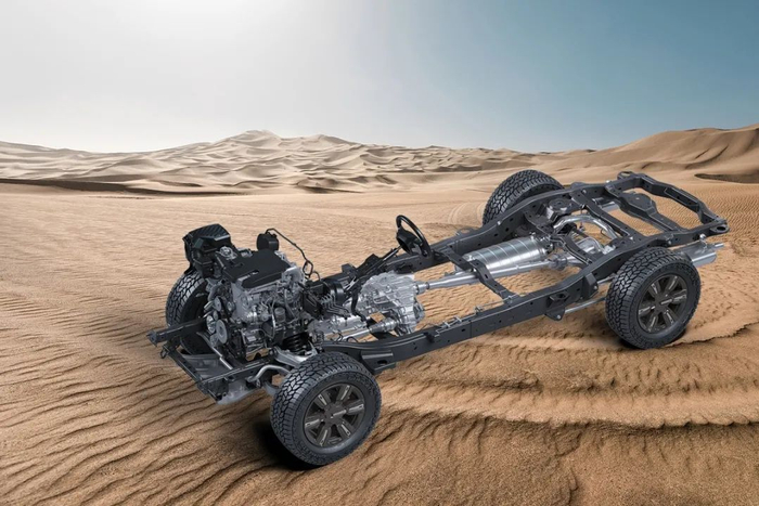 动力系统方面,新车全系采用2.0T+8AT,配上48V轻混,最大功率267马力,最大扭矩406牛米。参数虽然看着很不错,但要拖动整备质量达2.3吨的BJ60,应该只能属于够用的水平。比较可惜的是,目前全系只有汽油机,如果后期能追加柴油版本,越野性能方面应该会更上一层楼。