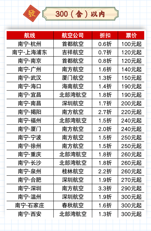 近期南宁始飞多地仍有折扣机票!假期有出行计划的市民朋友可留意