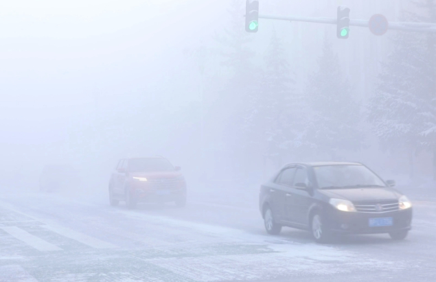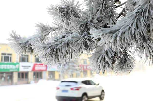今天一大早,漠河气温持续走低,其中,阿木尔镇最低气温为零下51.9度,这是1969年冬季后漠河的最低气温。持续低温使得空气中的水汽凝华而出现极端冰雾天气,本地人称之为“冒白烟”。冰雾下市区街道笼罩在一层白雾之中,能见度很低,过往车辆纷纷减速慢行。