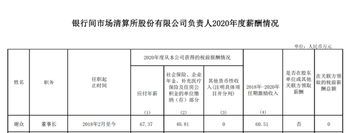 2020年,谢众从上海清算所获取的报酬包括年薪67.37万,2018年-2020年激励收入60.51万,此外,公司为其缴纳社会保险、企业年金、补充医疗保险及住房公积金40.81万,三者合计168.69万。