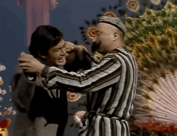 6.【1986年春晚真题】请问左侧男子在吃下老板的羊肉串后给出的评价是:( )。