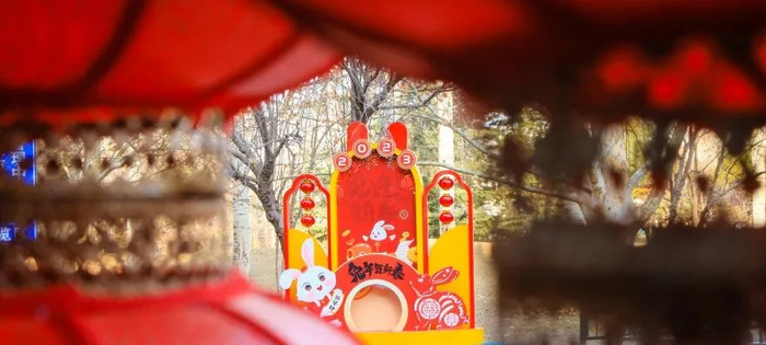 在客流集中的门区悬挂红灯笼、摆设迎宾立体兔年小景,主干道路摆放新春道旗,营造欢乐、喜庆、祥和的节日氛围。