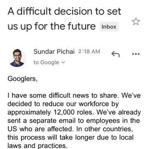 睡梦中收到裁员邮件!谷歌全球裁员1.2万,科技人才高薪时代即将结束?