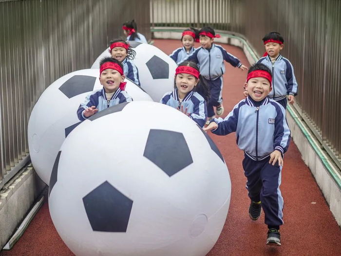 2022年12月9日,世界足球日,浙江省湖州市长兴县龙山街道中心幼儿园开展足球嘉年华活动,通过“带球越障”“足球大战”“定点射门”等游戏,增强孩子们对足球运动的兴趣,磨炼意志,快乐成长。吴拯 摄
