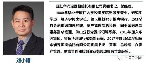 刘小腊正式由华润信托总经理高升至华润信托董事长。