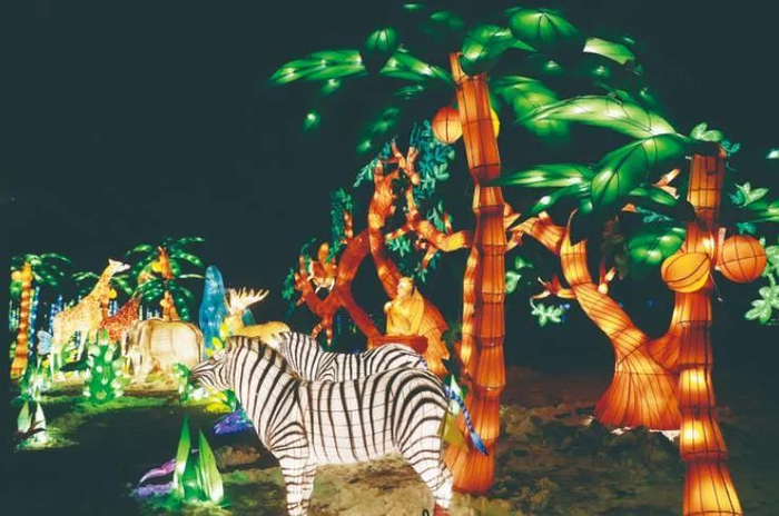 长春市动植物公园“欢乐动物园 疯狂动物奇妙夜”主题灯会是由近3000件灯组组成的40余处彩灯景观。这里有流光溢彩的时光隧道、神秘多姿的梦幻森林、曲折蜿蜒的月光宝盒迷宫、新颖别致的动物主题花灯……