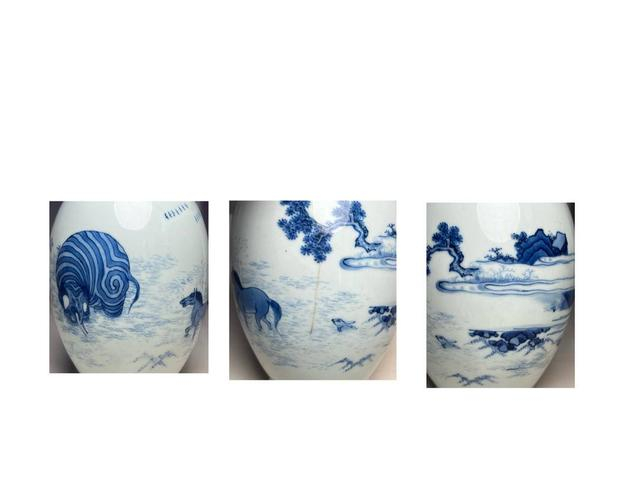 同样是崇年制瓷的瓷器,绘画与制瓷工艺堪称青花瓷器顶级制作。仔细观看,会发现绘画中有一只小兔子跟在最后,在水面若隐若现。而这只瓷罐的背后,有一个寓意深远的故事:三兽渡河。原来,佛教以兔、马、象三兽渡河入水之深浅,喻小、中、大三乘证道之高下;后泛指修行。出自《优婆塞戒经·三种菩提品》。宋.释道愿《景德传灯录》中写道:同在佛所,闻说一味之法,然所证有浅深。譬如兔马象三兽渡河,兔渡则浮,马渡则及半,象彻底截流。