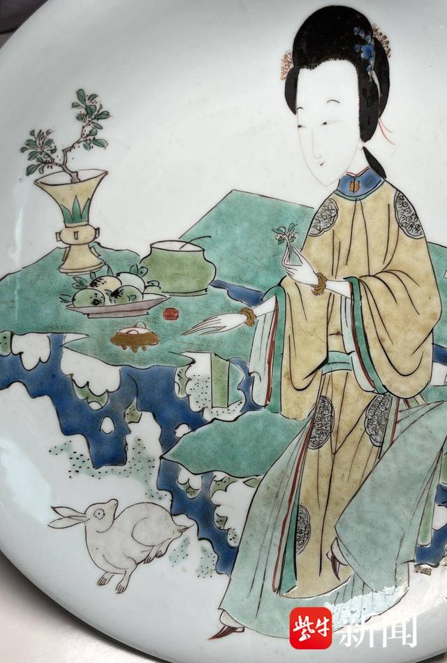 康熙五彩侍女兔纹盘图