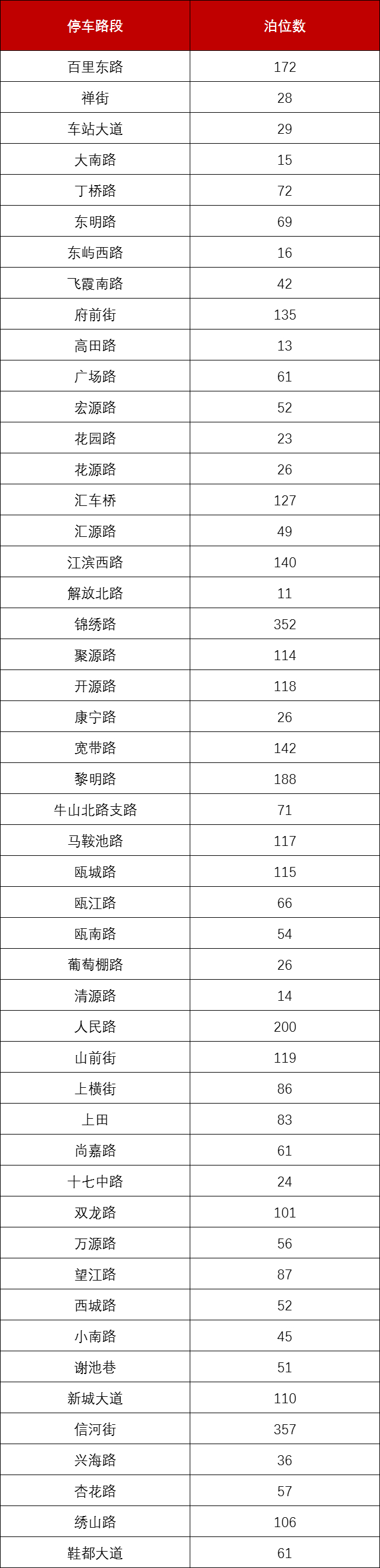 春节期间(1月21日至1月27日),温州三区差异化收费泊位免费开放。本次免费开放三区路内停车泊位(咪表位)8438个,其中鹿城区4175个,龙湾区1878个,瓯海区2385个。