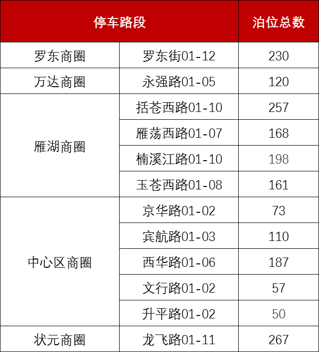 此次免费开放的公共停车泊位共计5809个,涉及路段为艾青路、滨河路、博士街、大堰河街、东和街、东宁路、东祥街、笃学路、复兴街、光南路、环城东路、康济南街、兰台街、施光南广场、宋濂路、学前路、燕尾洲路、政和街、金瓯路,清照路,通邮街,南泉街,东兴路,文定街,文定东街,文定西街,人民东路,绣景路,环城东路等金东区范围内全部路段。