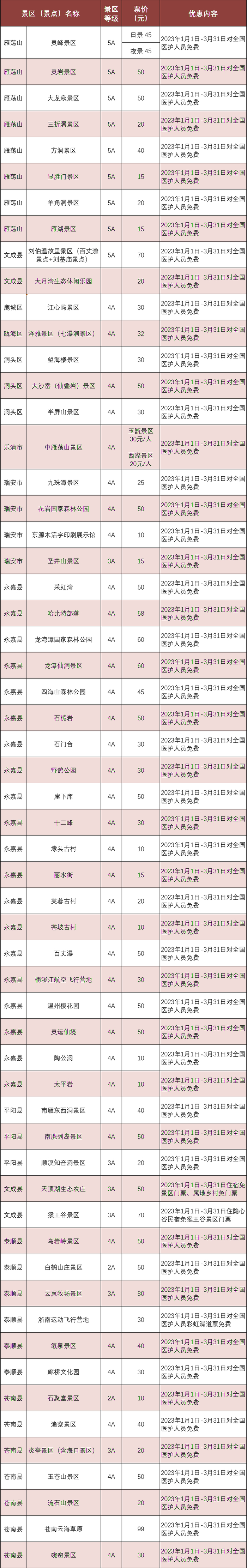 2023年一季度对全国医护人员优惠景区