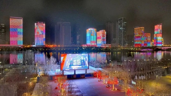最后,值得一提的是,通过“百城千屏+云听”双平台同步直播,观众可在全国约500个城市的文化广场“百城千屏”8K超高清公共大屏上,获得沉浸视听效果。如下图所示,天津首块8K超高清大屏是“百城千屏”布局中的首例,于1月21日除夕夜首次亮相试播。