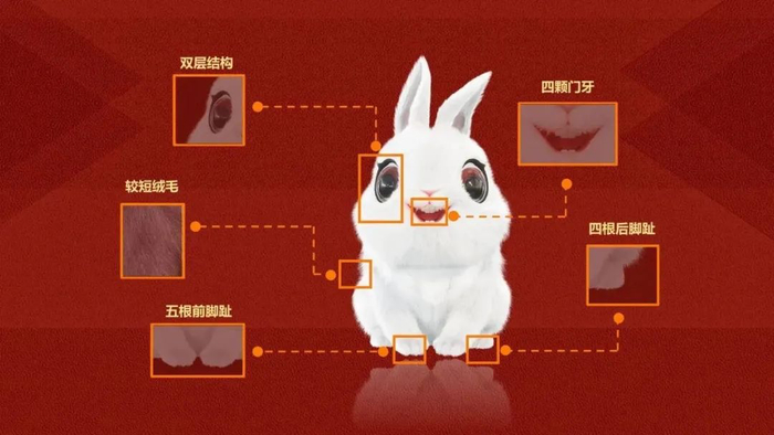 吉祥物“兔圆圆”的造型设计,由总设计湖南衡阳人陈湘波和春晚视觉设计团队历时4个月,历经13个版本打磨完成。整体形象在中国白兔的基本特征基础上,融入了传统中国工笔的审美风格,并采用3D立体建模技术完成。竖直的耳朵、微昂的脑袋、挺起的胸脯等设计巧思,无不彰显出奋进向上的精气神。