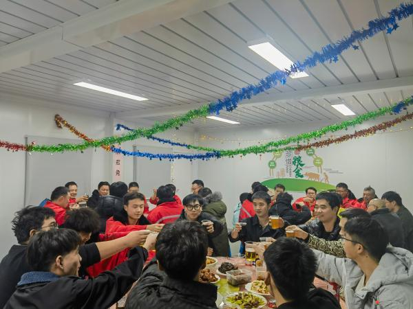 2019年12月,银都路隧道开工,恰逢疫情暴发。三年多来以来,这还是工地上第一次组织大家聚在一起欢度新春佳节。留下来的年轻人倒也自在坦然。“我的春节计划是白天工作,晚上聚餐,和家人视频电话。”杜磊是湖北荆州人,现在是盾构推进的关键期,身在关键岗位的他很早就有心理准备,早早和家人报备留沪过年。
