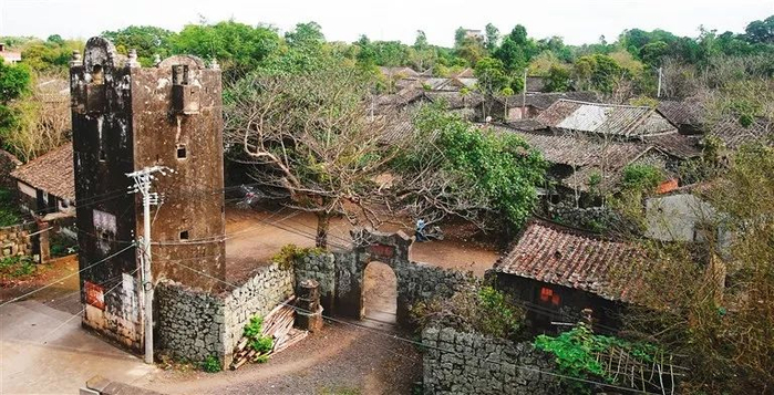 建村历史可追溯到800多年前的宋代,已入选第三批中国传统村落名录。由于整个村庄建在一个天然的火山熔岩流台地上,因此保留了众多火山石古建筑,包括古火山石休憩台、石筑的石门堂屋等。