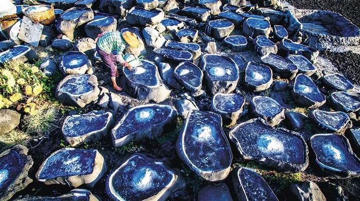 这里的民居全部由火山石所干垒而成,石门、石屋、石路、石墙、石井、石洞、石磨、石盆、石池、石臼等触目所及的建筑、生活、劳动用具,都是用火山石为材料制成,火山石已成为一种生命元素,深深地根植在古村的肌体中。