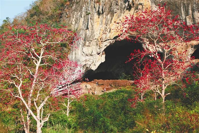 村东门旁,一棵树有两个生命,见血封喉树与榕树寄生生长,巨冠如盖。村民们说,这棵寄生在见血封喉树上的榕树,是飞鸟衔来的种子在此生根发芽。两棵枝干连接,难分你我,甚是多情,堪称奇观。