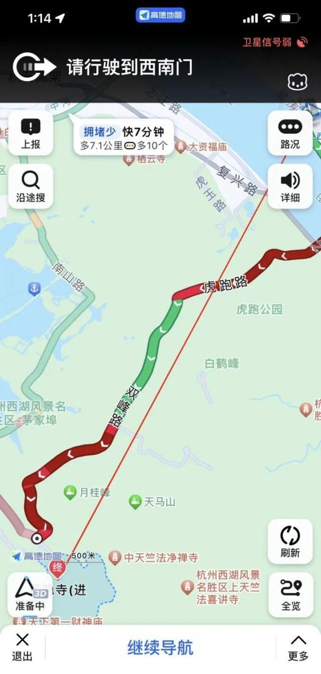 记者打开手机导航软件发现,