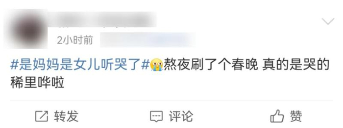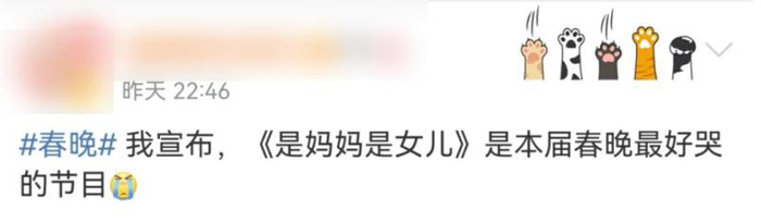 有网友称:《是妈妈是女儿》是本届春晚最好哭的节目。