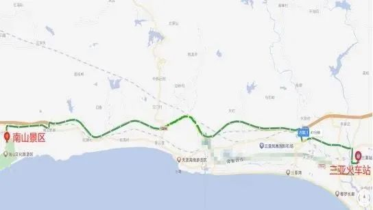 4.班次概要:单向发车;从三亚火车站始发,沿途不设置站点,仅三亚火车站——南山景区,2个站点,全程运营约34km。