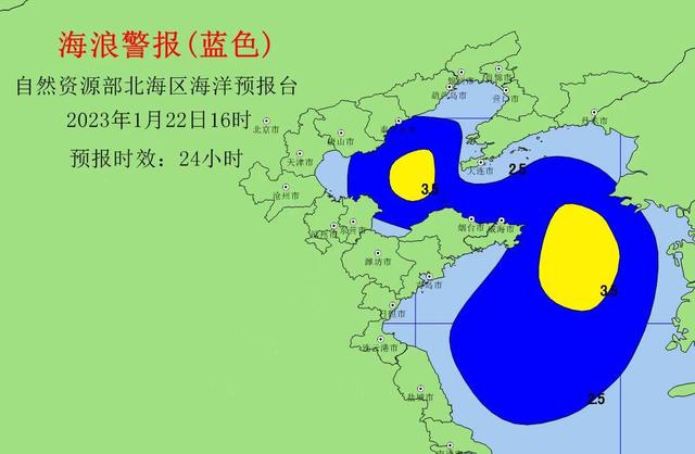 预计22日夜间至23日白天,渤海、黄海北部和中部将出现3.0米到4.0米的大浪到巨浪。河北、山东北部和东部沿海将出现2.0米到3.2米的中浪到大浪,近岸海域警报级别为蓝色。