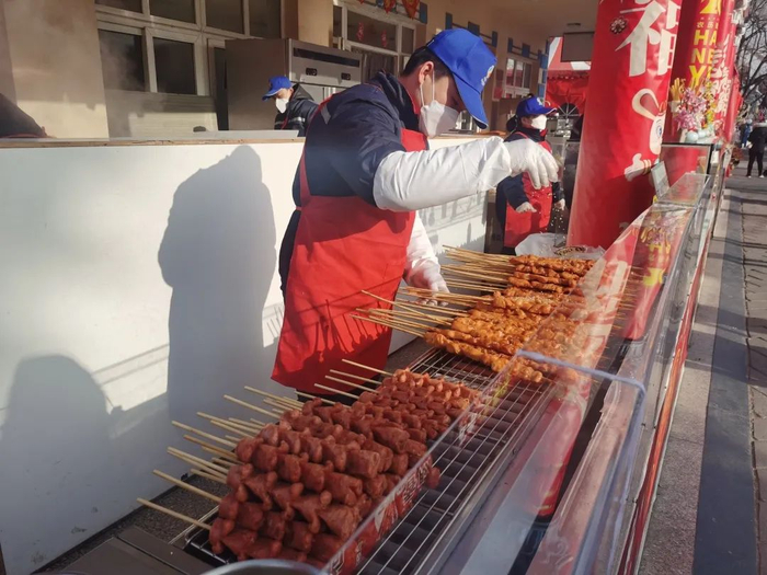 庙会当然还少不了充满烟火气的美食市集,在这里从南到北中华各地特色小吃一站式打卡。迎春活动第一天,石景山游乐园人流如织,一些店铺排起了长队。吃点美食,听听商贩们的叫卖声……只有置身于庙会那种氛围,年味才会被渲染的淋漓尽致。