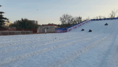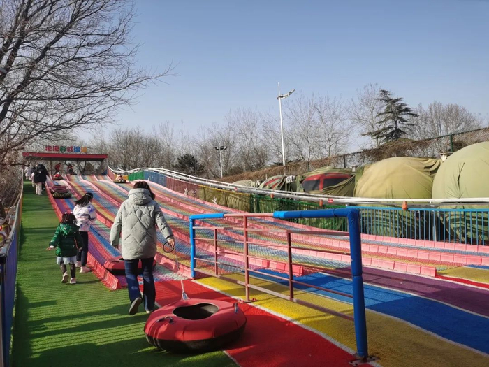 上万平方米的人造冰雪景观,深受大小朋友的喜爱,玩的不亦乐乎。傍晚还增加了冰雪主题的彩灯,到了整点时刻,超大型人工降雪机将启动降雪模式,游客置身其中仿佛真的来到童话故事里的冰雪世界。