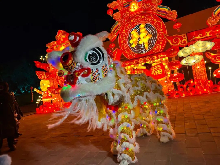 除了自贡花灯组,还有各种互动表演,热闹的舞龙舞狮、花车大巡游,保证嗨一整天都停不下来。