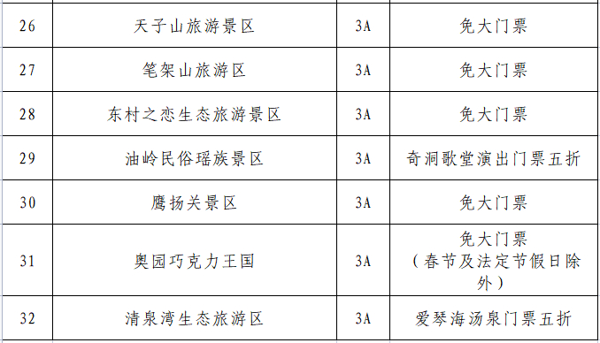 多个景区推出免票或优惠活动,