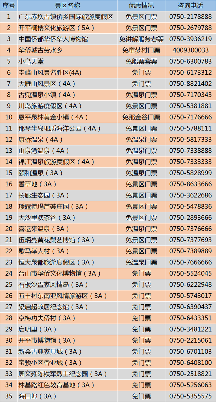 为表达对广大医护人员的感恩感谢,江门35家主要景区向全国医务人员献出开“门”红大礼包,给予全年免门票礼遇。