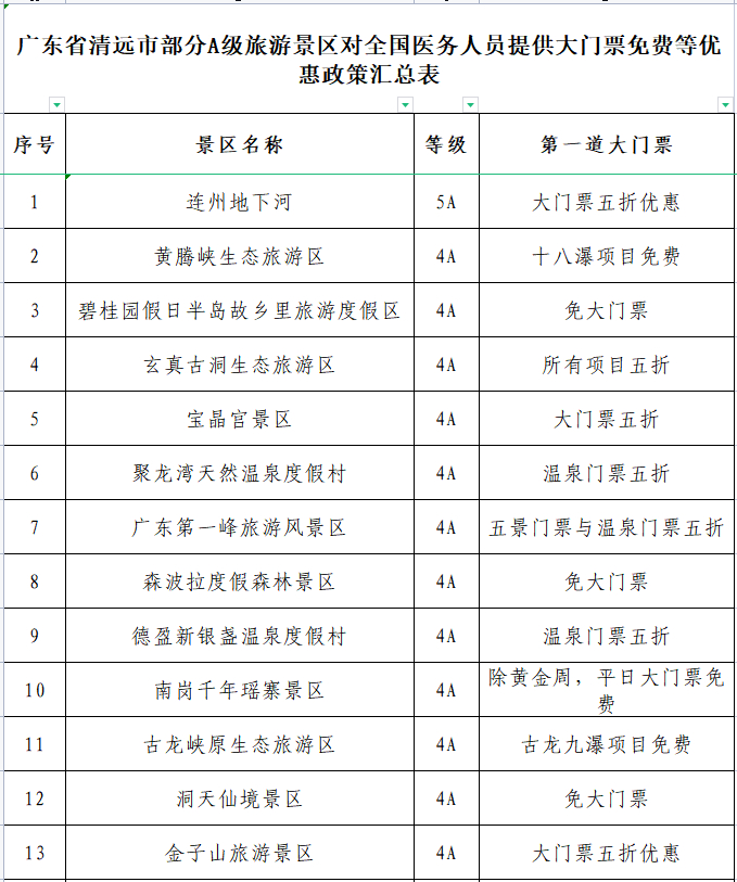 全国获国家统一颁发的医师资格证或医师执业证、护士资格证或护士执业证、卫生专业技术资格证(含医、护、药、技专业)的医务人员,至景区游客服务中心或售票处办理享受优惠手续。请提前联系景区预约,最终解释权归各景区所有。