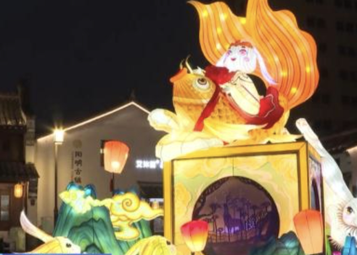 日前,余姚市阳明古镇上鲤跃龙门、龙腾姚江渡、玉兔望星汉等12盏大型花灯璀璨亮相,古镇变得更加流光溢彩,一派喜气,吸引了众多市民和游客前来赏灯、观景。灯会将持续至3月31日。