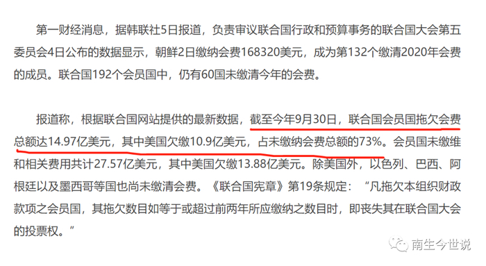 联合国曾公开了这样一组信息:包括墨西哥、以色列、巴西、阿根廷、美国在内的部分国家仍未及时、足额缴纳2022年的联合国会费,拖欠数额达到了14.97亿美元。财政,再度出现危局。
